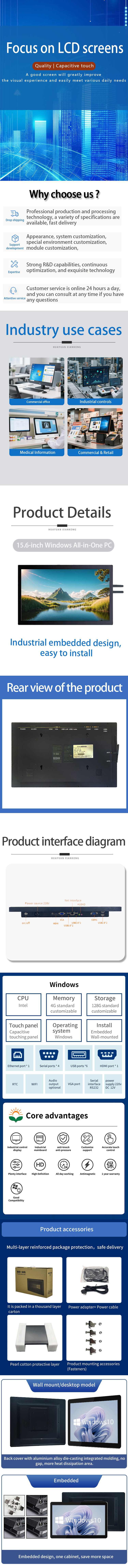 Wall Embedded 21.5 Inch Android Touch Panel 1920*1080 LCD Android 11 Display Panel 16G 32G 64G 128G
