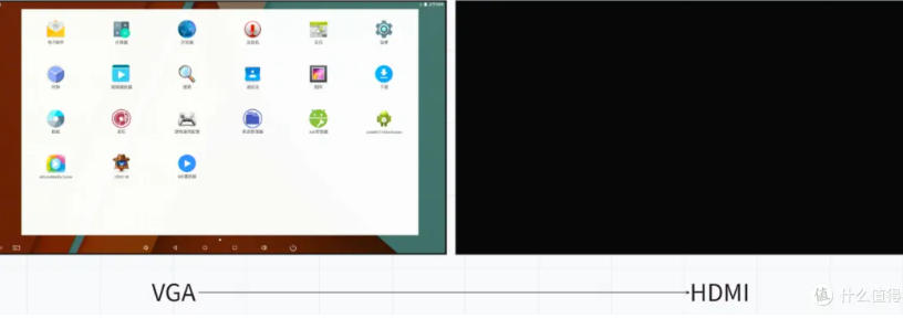 The dual-screen display will be activated immediately after opening the software (generally, the main screen is VGA and the secondary screen is HDMI by default), with a landscape display effect by default.
