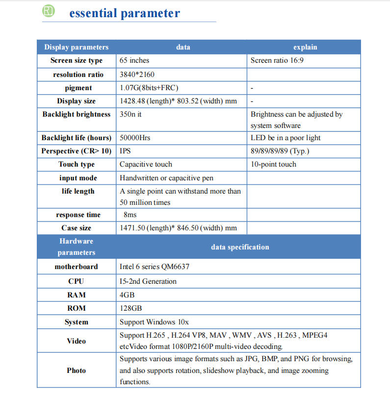 43 Inch All-in-one Monitor 1080p Full HD Touch-screen RK3568 RK3588 Android 11 Operation System